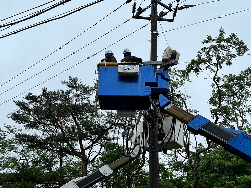 この仕事のやりがいは、なんといっても20年・30年先まで残るインフラに関わるお仕事という点です。また、仕上がりが目で見てわかる場所の施工となるため、綺麗な仕上がりを確認できた際は達成感とやりがいを感じる事ができます。もちろん、大変なこともあります。外の作業のため雨のや雪の中での作業は慣れるまでなかなか大変です。また、私たちは災害時の復旧作業等にも対応しています。電気を当たり前に使えるように、使用できなくなった際は、少しでも早く復旧できるかが私たちの作業にかかっているのです。それでもこの仕事を続けているのは、他にはない達成感・やりがい、そして責任と誇りがあるからだと思います。大変な部分もあるからこそ、サポート体制が充実しているのが弊社の強みです!休みもちゃんと有ります。有給もしっかり取れます!昔の建設業のイメージとは違い、働きやすい環境だと思います!未経験から手に職をつけれます。今後も続く配電線工事は、安定した収入を得ることが可能です。少しでも興味のある方、ぜひ弊社の雰囲気を覗きに来てみてください!